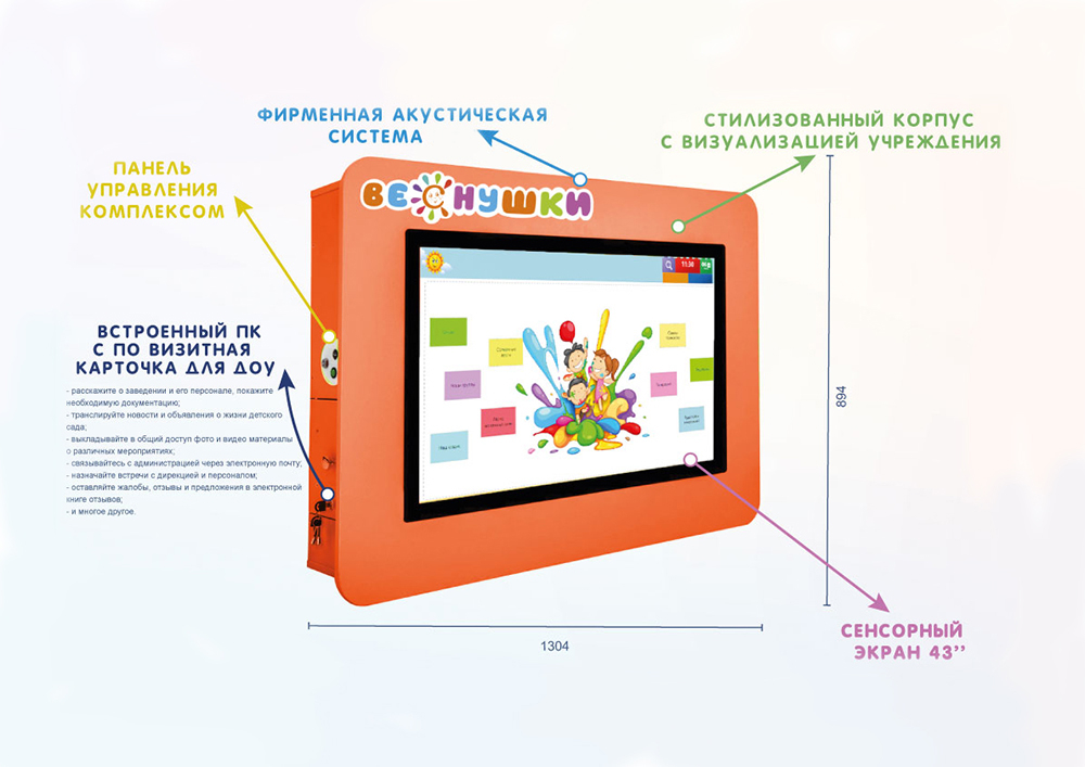 Главная Каталог Интерактивное оборудование Интерактивное расписание Интерактивная визитная карточка «Детский сад» 43” light