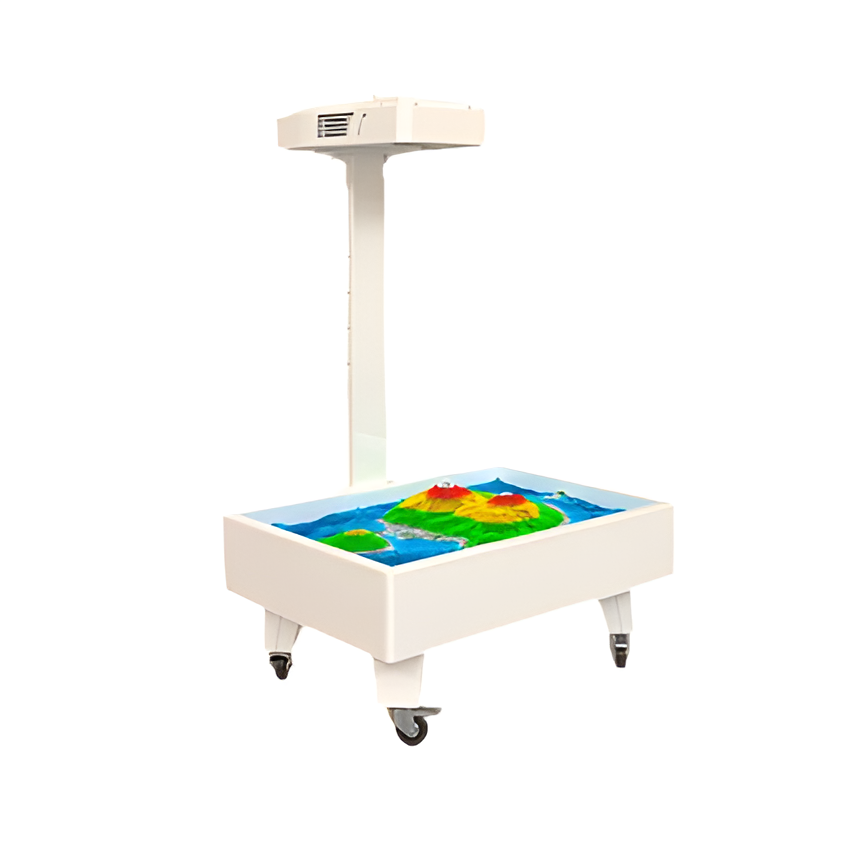 Это песочница, в которой установлен компьютер, проектор, сенсор глубины и специально разработанное программное обеспечение. В результате чего получился уникальный инновационный продукт, который привлекает внимание всех без исключения.