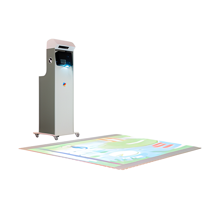 Комплекс представляет из себя интерактивный пол. За счет конструкции тумбы с колесиками, где находится проектор, системный блок и датчик движения, комплекс можно перемещать и проецировать изображение на стену.