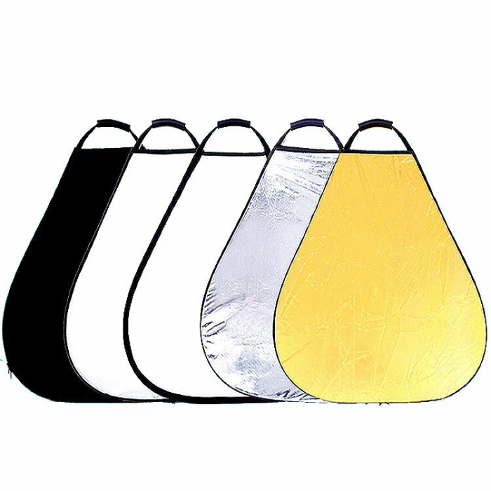 5-в-1 Набор треугольных отражателей диаметром 60 сантиметров - (с ручками) белый, черный, серебряный, золотой, полупрозрачный + сумка для переноски.