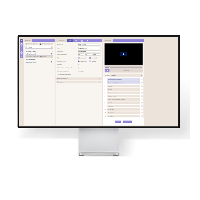 • Программное обеспечение позволяет создавать базу данных, в которой сохраняются индивидуальные настройки, результаты калибровок и игр.