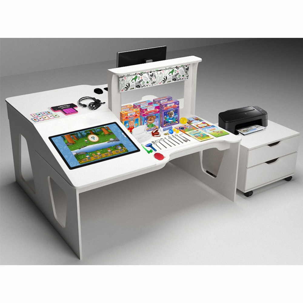 Основное преимущество профессионального стола логопеда "Лого-Про Макс" состоит в сбалансированности и высокой функциональности, а также техническим средствам и программному обеспечению позволяющему более качественно проводить логопедические сеансы с детьми. Данный комплекс можно использовать также с группой детей.