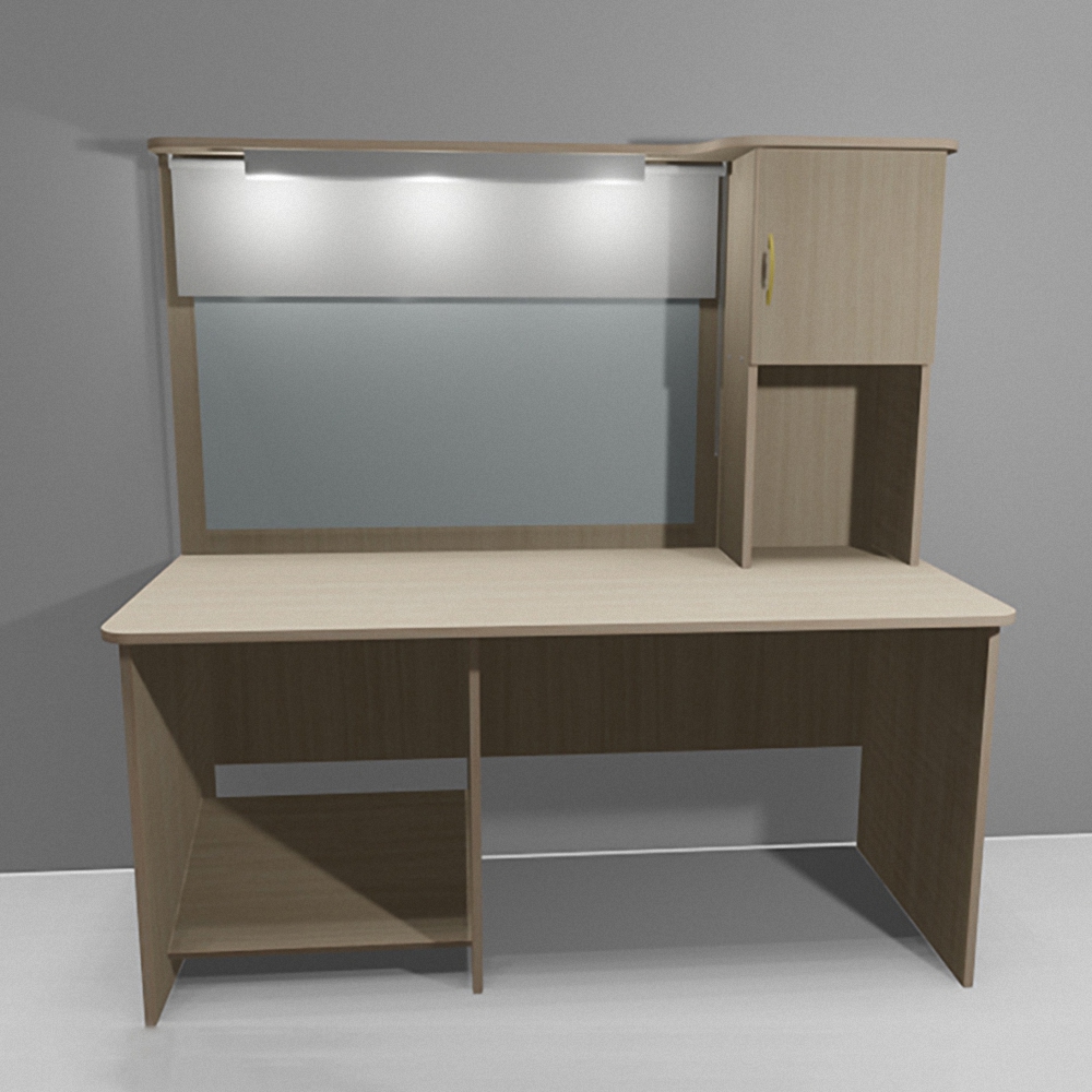 Наш стол оснащен зеркалом размером 643х943 мм, светильником мощностью 36 Вт и габаритами 600х64х40 мм, регулируемыми ножками в количестве 4-х штук, а также рулонной шторой 1000х1600 мм. Дополнительно установлен шкафчик и полочки для размещения дидактических материалов и инструментов для занятий.