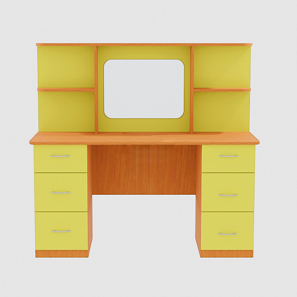 В столе всего 6 выдвижных ящиков для хранения. По 3 с каждой стороны. В них поместится все необходимое для организации рабочего процесса. На столешнице по бокам есть полки, где можно хранить вещи, которые постоянно нужны «под рукой». Это упрощает процесс работы, так как нет необходимости постоянно наклоняться к ящикам за часто используемыми предметами.