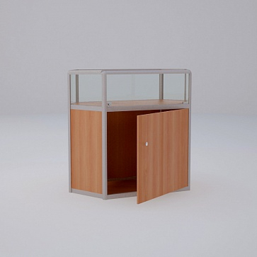 Стол музейный  - многофункциональная конструкция высокого качества для размещения и демонстрации экспонатов. В верхней части стола имется одна распашная стеклянная дверка, закрывающаяся на замок. В нижней части расположен накопитель для хранения материалов музейного фонда. Накопитель оснащен одной распашной дверцей, закрывающейся на замок. Благодаря своей пятиугольной форме, стол обычно размещается в углу помещения.м.
