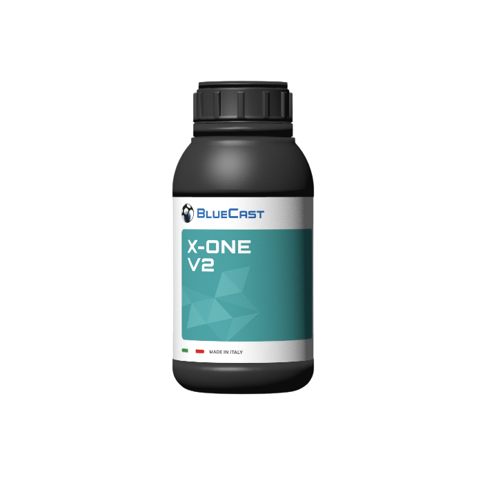 X-One V2 — это настоящая плавящаяся смола, разработанная и произведенная компанией BlueCast для машин с DLP и монохромными LCD экранами. Благодаря полимеру с низкой температурой плавления она обеспечивает гладкую отделку поверхности и идеальную четкость букв. X-One была разработана компанией BlueCast для достижения отличных результатов литья с любыми видами формовочных материалов и циклами сжигания. Это первая литьевая смола с 0% усадкой и чрезвычайной размерной стабильностью.