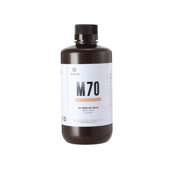 Фотополимер Resione M70 — это твёрдая и устойчивая к механическим нагрузкам смола. Надёжно фиксируется на рабочей пластине, обеспечивает повышенную детализацию и точнее передаёт размер деталей за счёт очень низкой усадки.