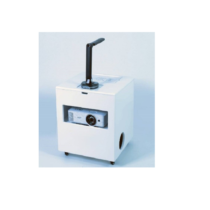 Благодаря подвижной платформе и компактным размерам оборудование легко перемещать между помещениями, а яркий проектор позволяет выводить изображение на различные поверхности.