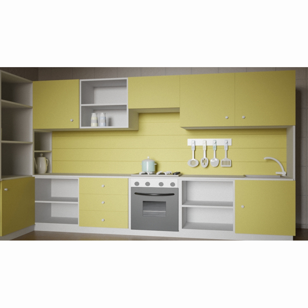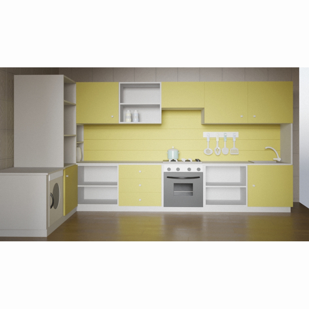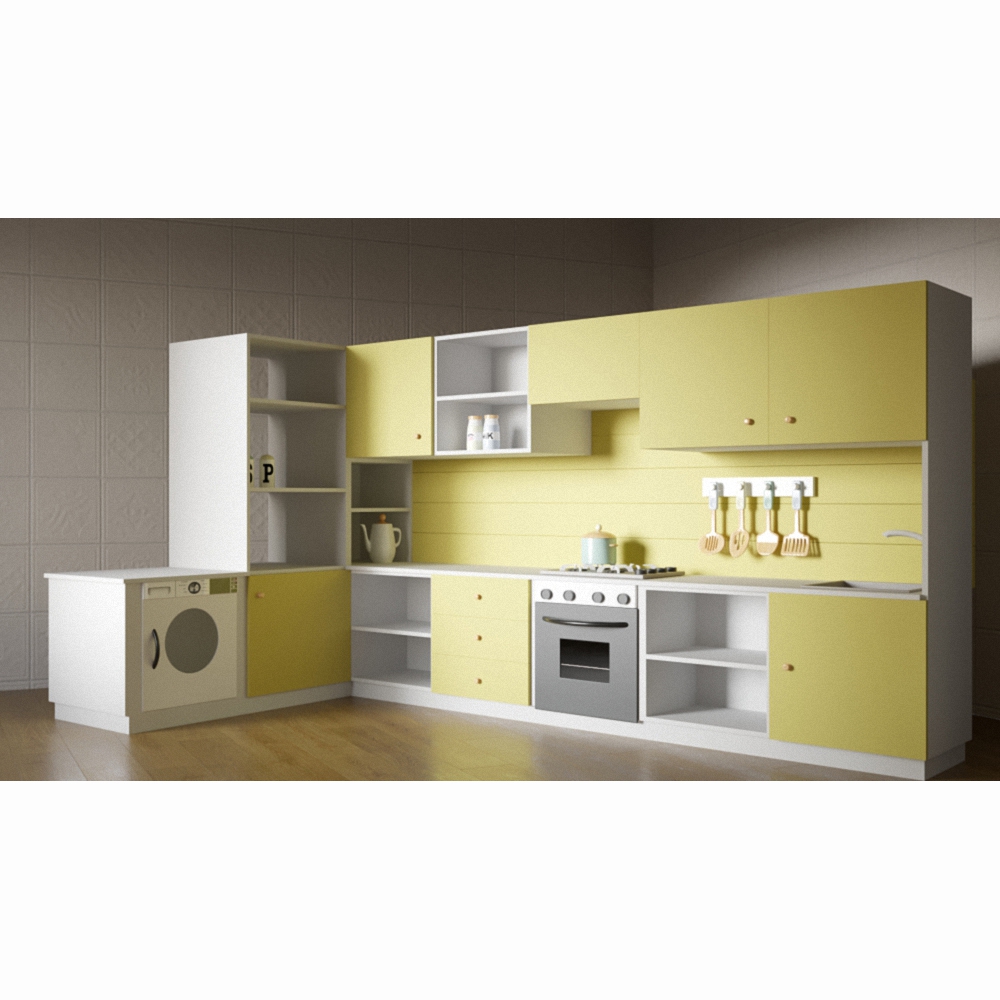 Детская кухня «Дарья» начинает радовать при одном только взгляде на нее – фасады, окрашенные в сочный салатовый и нарядный белый, радуют и вызывают желание играть. Для веселого времяпрепровождения имеется все необходимое – духовой шкаф, стиральная машина, мойка, плита и удобные полочки для хранения игровых наборов посуды и муляжей продуктов питания. Удобная угловая конструкция – еще один плюс в пользу этой модели. Кухня изготовлена из материалов высокого качества, что позволяет пользоваться ею долгое время без вреда для здоровья.