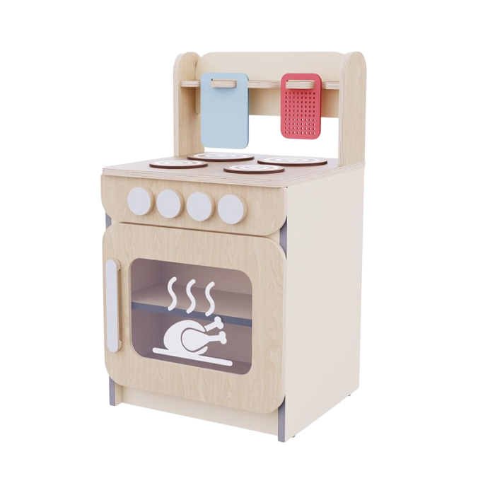 Плита и духовой шкаф изготовлены из натурального дерева, что делает их прочными и безопасными для детей. Компактный дизайн и реалистичные детали создают увлекательную игровую среду, где маленькие шеф-повара смогут готовить свои кулинарные шедевры.
