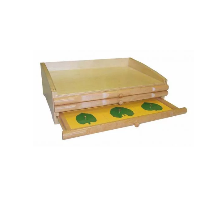 Материал предназначен для изучения различных форм листьев. Ребенок многократно вставляет вкладыши в соответствующие рамки, обводит листья, запоминает их названия.