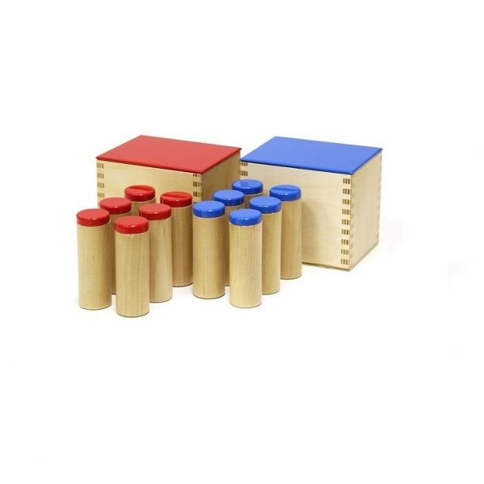 Материал предназначен для развития слухового восприятия. Ребенок учится составлять пары одинаковых шумов. Происходит пробуждение акустического внимания. Косвенно происходит подготовка к музыкальным занятиям, к работе в тишине. Крышки цилиндров соответствуют цвету крышек коробочек. При встряхивании цилиндры издают различные шумы.