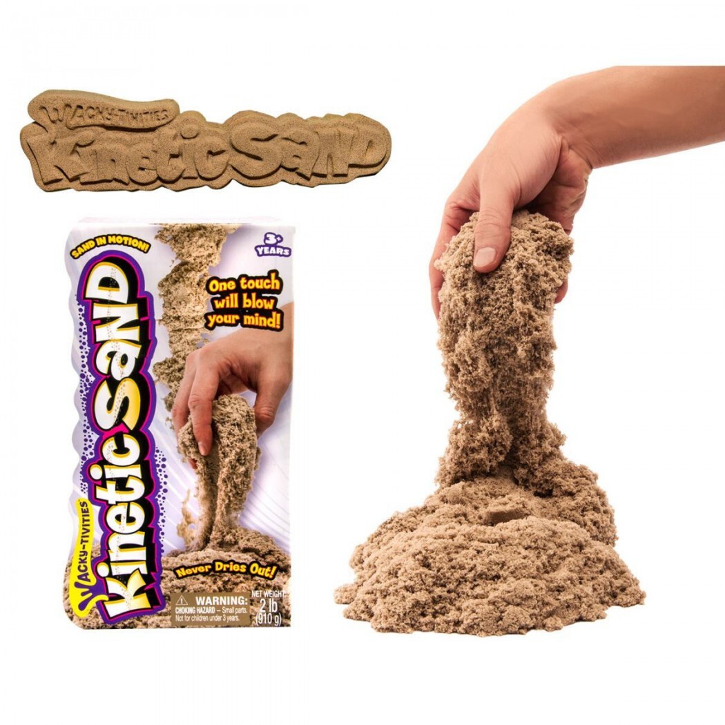 Kinetic Sand похож на мокрый пляжный песок ,но в то же время он мягкий и пушистый, и течет сквозь пальцы, оставляя при этом руки  сухими. Kinetic Sand не рассыпается как обычный песок и очень легко собирается даже если попадет на ковер.