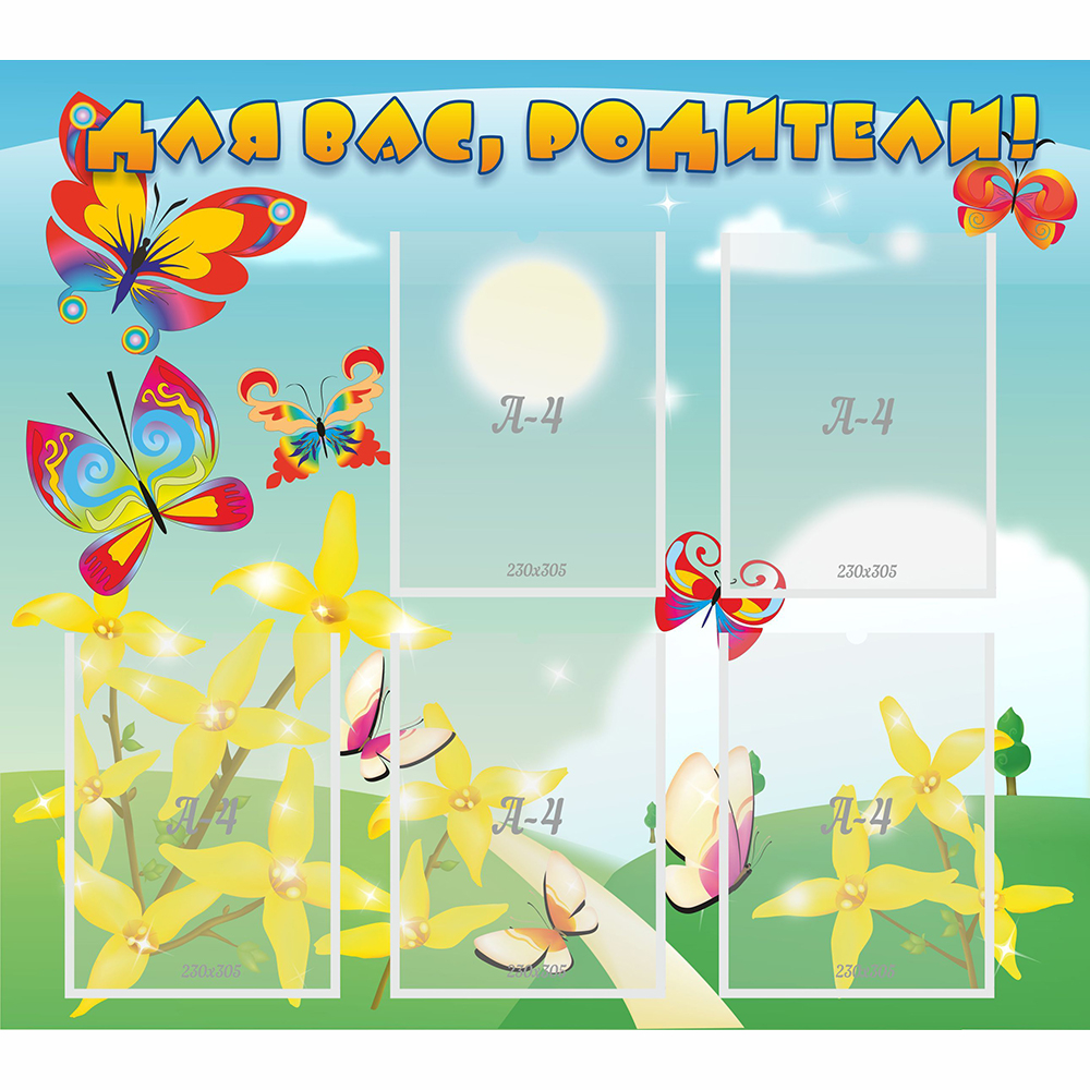 В детском саду родителям тоже нужно уделять внимание. Ведь у них часто возникают разные организационные вопросы, которые требуют моментальных ответов. И информационный стенд может стать для этого отличным решением. Оригинальный и практичный, на нем можно поместить необходимую информацию для сведения родителей, а яркие цвета чудесной дополняют общую атмосферу детского сада. Универсальный по своему размеру, он идеально подойдет к любому помещению, разместить его можно в холе, при входе или в любом коридоре, главное, чтобы он был в досягаемости родителей. Стенд — это прекрасная идея для размещения информации и украшения помещения.