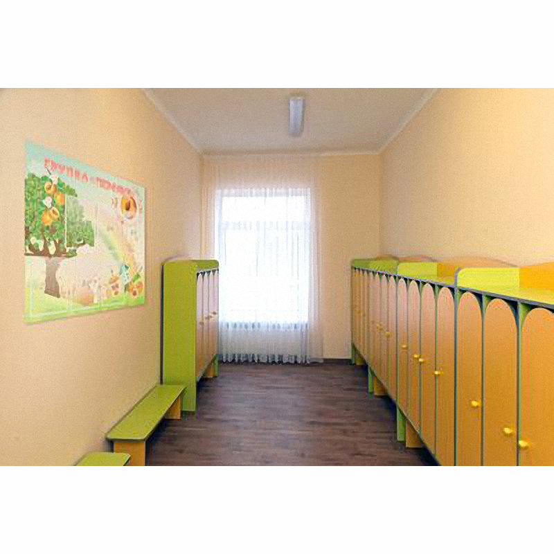 Дизайн стенда разработан специально для группы "Персики". Его основа - персиковое дерево и его плоды. Широкая радуга и сказочные домики органично дополняют картину.