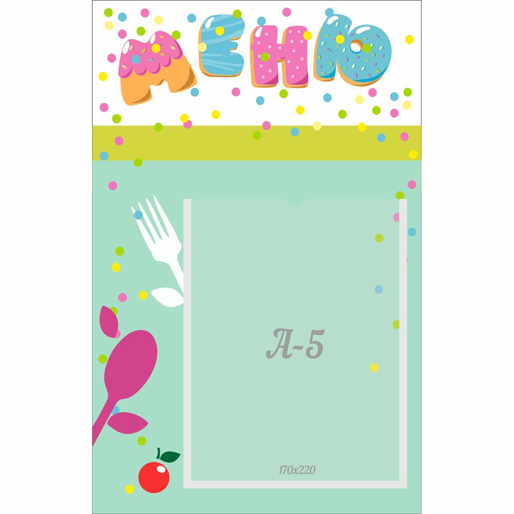Стенд МЕНЮ предназначен для оформления обеденных зон в детском саду. На нем можно разместить полезную информацию о дневном рационе детей. Стенд легко транспортировать и монтировать на любую стену.