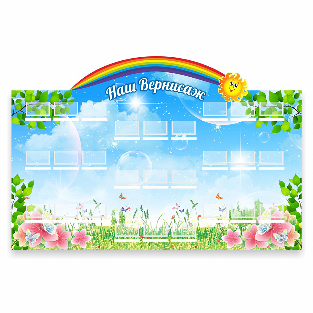 Необычный яркий стенд отлично подойдет для оформления творческого уголка в детском саду. В 27 удобных кармашках или на таком же количестве полочек можно разместить детские поделки, рисунки или фотографии. С помощью стенда можно устроить выставку творческих работ детей из разных групп.