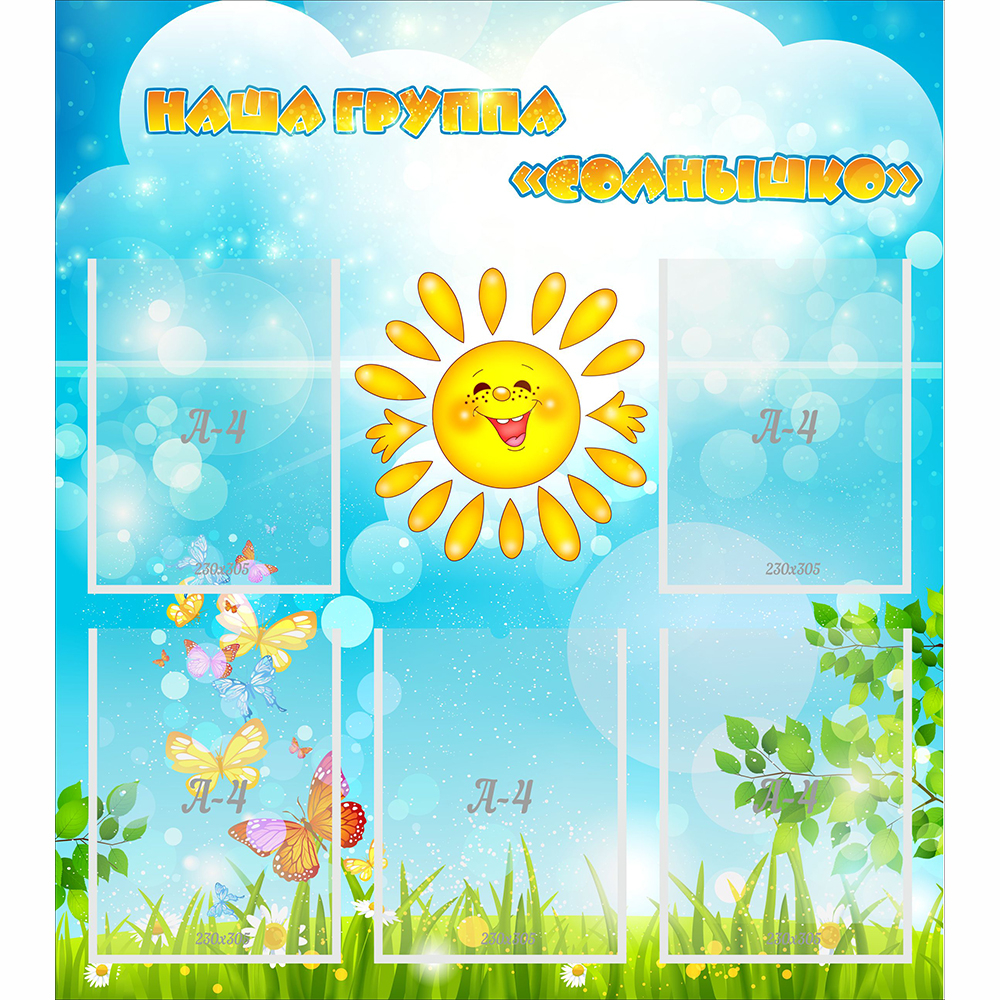 Стенд "Наша группа Солнышко" с 5 карманами