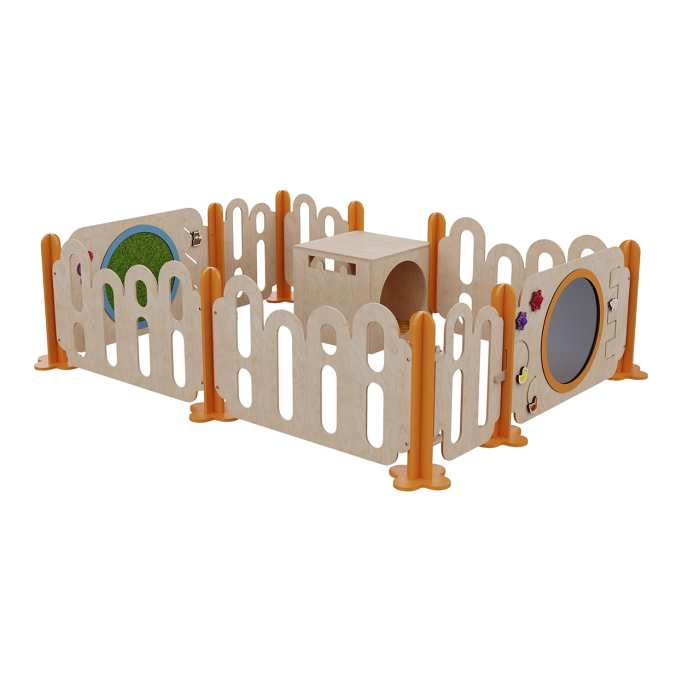 Манеж обеспечивает безопасность малышей, а дополнительные элементы конструкции — куб и бизиборды — расширяют игровое пространство и способствуют развитию координации, моторики и фантазии.