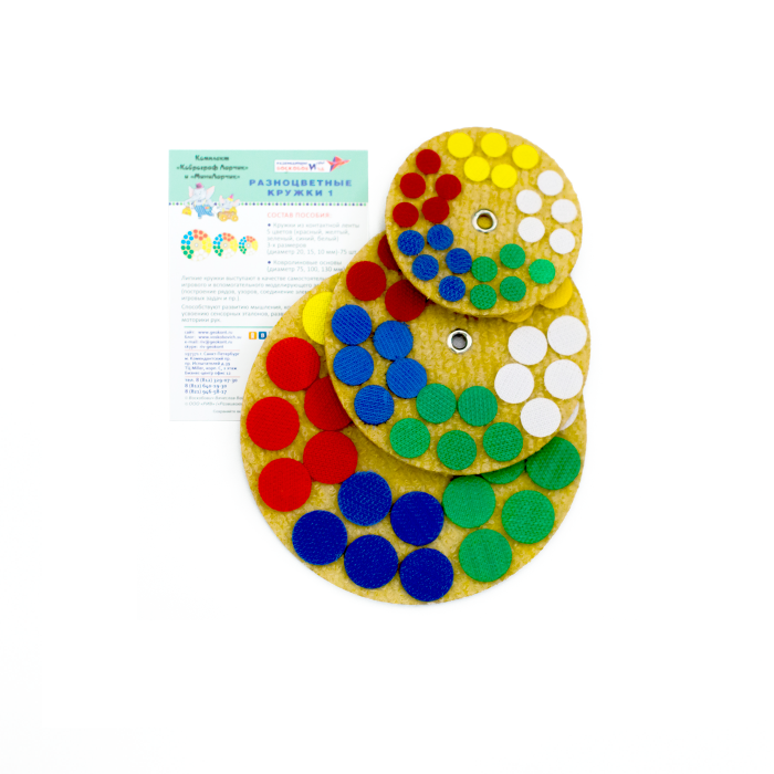 Разноцветные кружки-самостоятельный и вспомогательный элемент для моделирования игровой и обучающей ситуации по замыслу педагога и для самостоятельной деятельности детей.