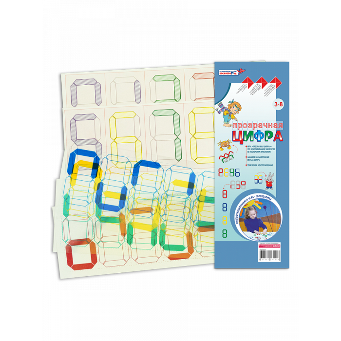 Игра знакомит с образом цифр и букв, элементами для их составления путём наложения на образец (картонную карточку) или приложения с опорой на образец или по памяти. Игра способствует развитию творческого мышления и воображения в процессе составления из отдельных элементов фигур и образов. Можно использовать как для индивидуальных развивающих заданий, так и для организации коллективных настольных игр.