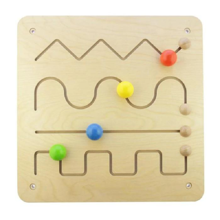 Панель содержит игру в скользящий лабиринт улучшает ранние навыки письма и развивает мелкую моторику. Этот предмет можно использовать либо с креплением к стене.