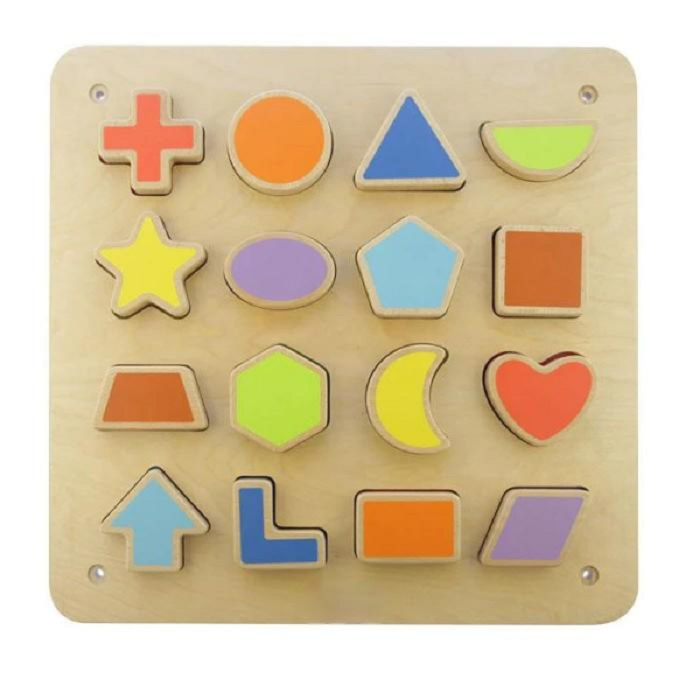 Панель помогает детям изучать цвета и геометрические формы. Магнитную доску можно закрепить на стене.