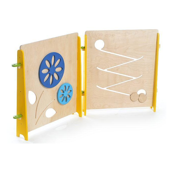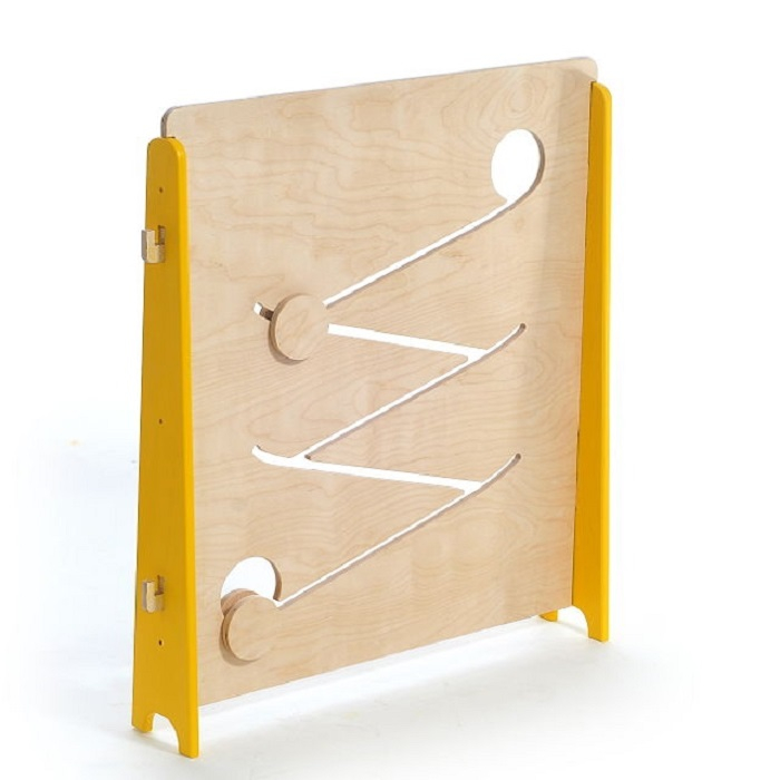Игровая панель с желобом в виде зигзага и со свободно движущимся колесиком. Задача: переместить колесико из одного пункта в другой. Развивается кисть руки.