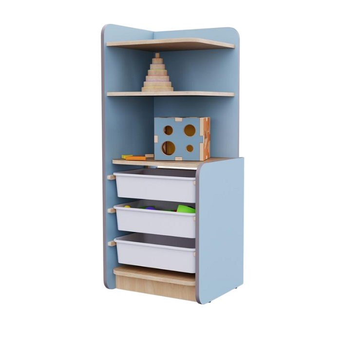 Угловой шкаф с тремя ящиками сконструирован для оформления углового пространства игровых комнат в детских учреждениях. Подходит для оснащения детских садов, организаций дополнительного детского образования, игровых комнат в ресторанах, торговых центрах и детских лагерях. С угловым шкафом можно легко создать систематизированное хранение и атмосферу порядка в ДОУ.