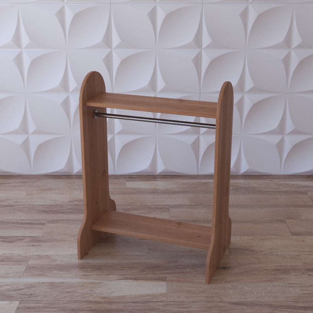 Вешалка напольная “Весенний день” представляет из себя модуль из натуральной древесины, боковые панели окрашены в зелёный цвет либо цвет натуральной тёмной древесины; в составе модуля есть 2 деревянные полочки и металлическая штанга для вешалок-плечиков. Вешалка напольная детская “Весенний день” может выступать в качестве игрового модуля для игровых групп в садиках и яслях.