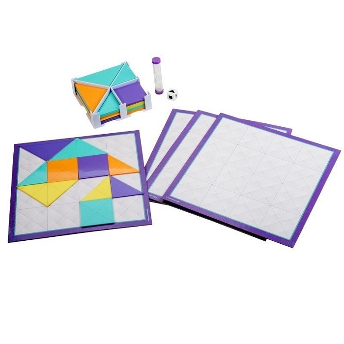 В этой увлекательной стратегической игре учащиеся соревнуются: выбери карточку,кинь кубик и кубик и выберите форму, которую он показывает. Составляйте различные фигуры, фантазируйте,но соберите карточку быстрее соперника.Побеждает тот, кто сделает это первым! Используйте символ руки и возьмите нужную вам фигуру с доски другого игрока!