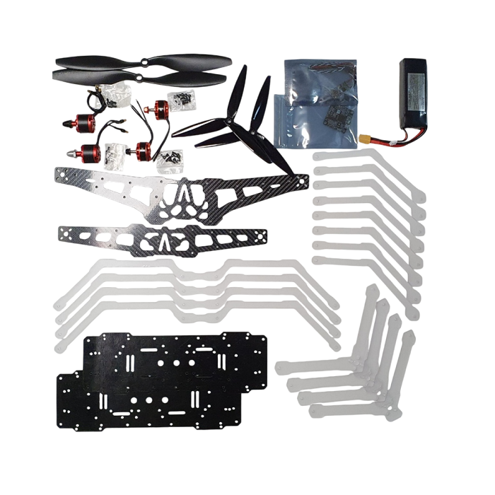 Ремкомплект, совместимый с конструктором программируемого квадрокоптера DH:ALFA 2в1 состоит из базовой платы управления, комплекта воздушных винтов, комплекта деталей рамы, комплект защиты воздушных винтов, моторов.