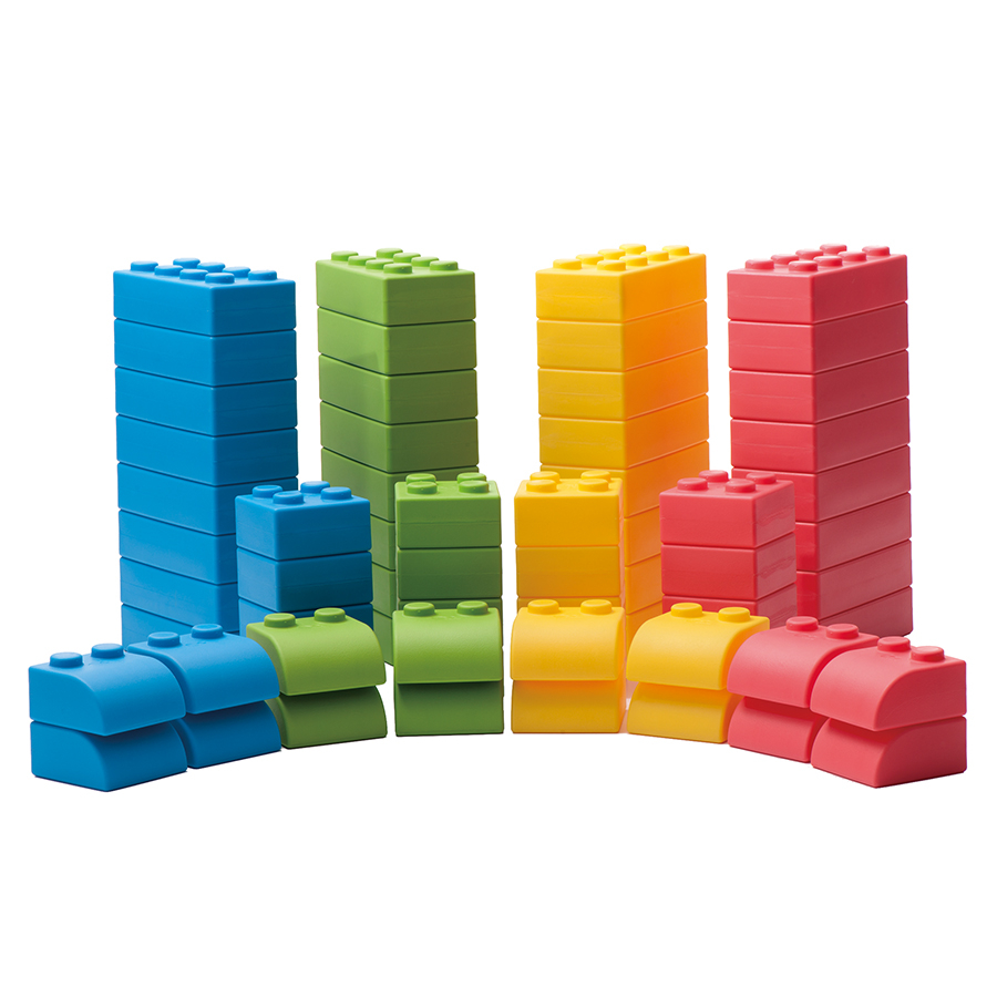 Детали окрашены в 4 основных цвета (желтый, зеленый, красный и синий). Это позволяет даже детей самого раннего возраста знакомить с цветами. Универсальность конструктора состоит в том, что дети младшего возраста могут легко строить простые конструкции, а дети старшего возраста (даже школьники) могут создавать объемные сооружения и использовать их в играх (гаражи для машин любых размеров, элементы мебели, дома для кукол и даже для самих детей.