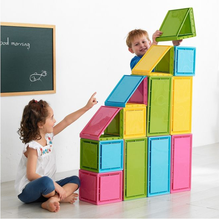 Красочные строительные блоки с крупным масштабом отличаются высоким качеством. Каждую панель можно штабелировать для экономичной транспортировки и минимального хранения. Панели могут быть собраны в виде кубов или призм.
