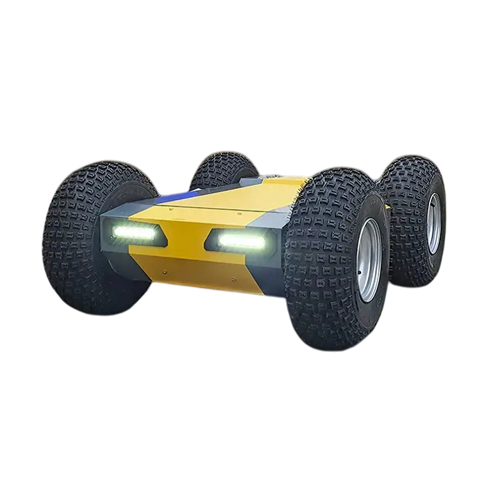 Универсальная колесная платформа 4х4, радиоуправление с пульта до 200м, металлическая и композитная обшивка корпуса, светодиодные фары, возможность установки навесного оборудования, скорость до 20км/ч. Отлично подойдет для логистических задач, перевозки грузов по территории по заданному маршруту.