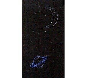 Настенное панно с мерцающими звездами на фоне темного неба. Мерцающие полумесяц, сатурн, звездный фон.